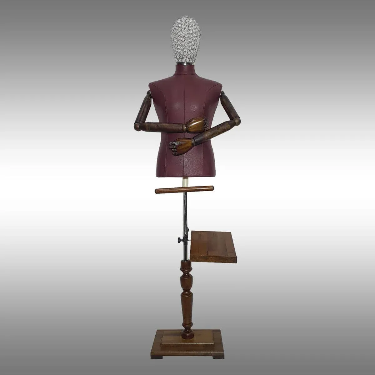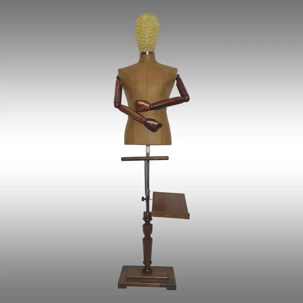 Erkek terzi mankeni ahşap kollu tel kafalı özel ayak tokyo kumaşlı vitrin, prova, dikim, dekor ve teşhir mankeni olarak kullanabileceğiniz bir modeldir.