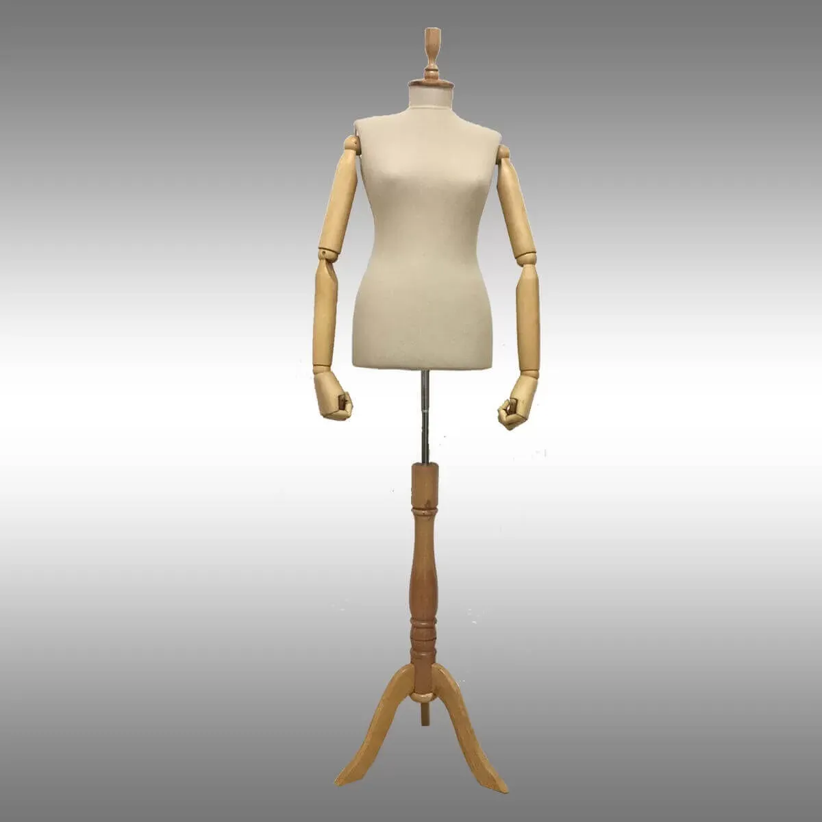 Plastik bayan terzi mankeni ahşap kollu döşemeli çatal takım vitrin, prova, dikim, dekor ve teşhir mankeni olarak kullanabileceğiniz bir modeldir.